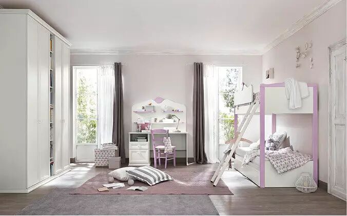 小女孩的房间,在白色家具中加少许淡紫色,便有了可爱的感觉。