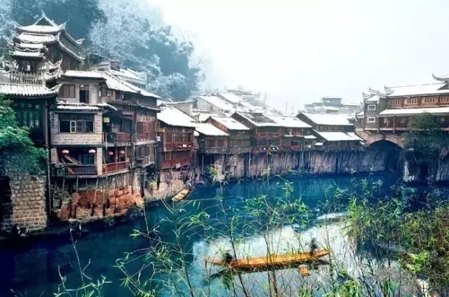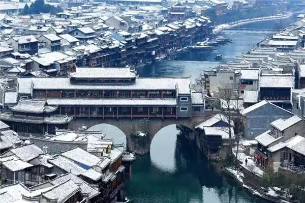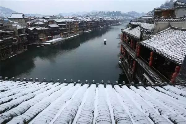 1/ 凤凰古镇 冬季住在凤凰,最意外的惊喜是拉开阳台帷幔时,映入眼帘的是银色的世界,洁白的雪花铺满了整个大地,近处客栈和小店的黛瓦上盖上了一层皑皑白雪,妙不堪言。