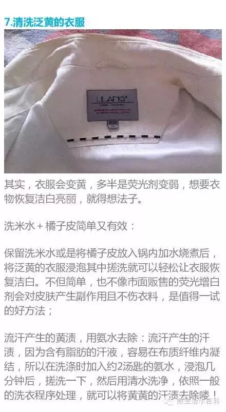 ? 衣服上总会弄上脏东西,衣柜里有好几件衣服都泛黄,总以为是没洗干净!现在终于知道了,并且有对付的方法,赶紧学习学习吧!