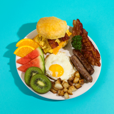 主食谷物:米饭、面条、粥、面包、燕麦; 蛋白质:鸡蛋、火腿、鱼肉; 水果:西瓜、桃子、香蕉、芒果、哈密瓜; 乳制品:酸奶、牛奶、干酪; 附加项:杏仁、腰果、核桃等坚果。